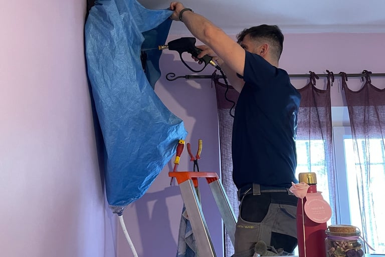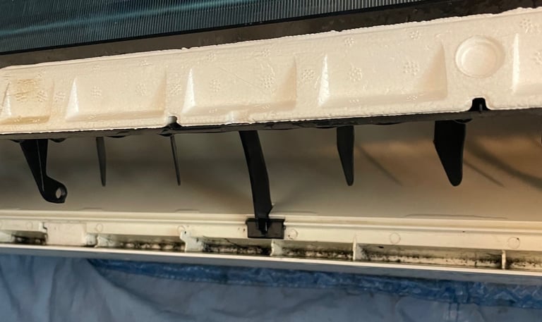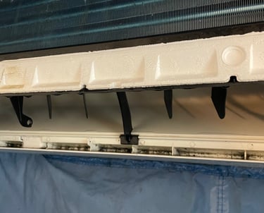 Un nettoyage haute pression des unités intérieures avec des produits professionnels bactéricides fongicides.